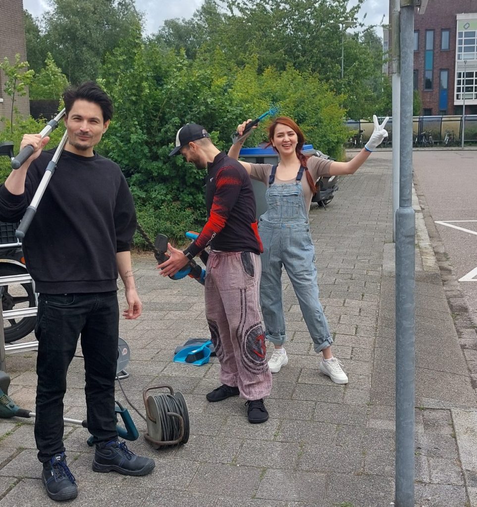 Samen met een aantal bewoners staken we de handen uit de mouwen tijdens een gezellige groenmiddag op onze locatie Ampèrestraat in Alkmaar.